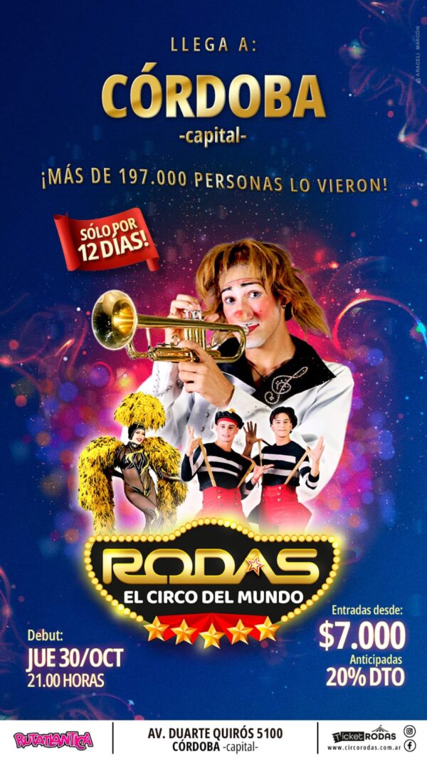 El próximo jueves 30 de octubre, a las 21, tendrá lugar el gran estreno del nuevo show del Circo Rodas, que estará en Córdoba Capital en el predio ubicado en Duarte Quirós al 5.100 con un despliegue inimaginable de atracciones,… Ver más →