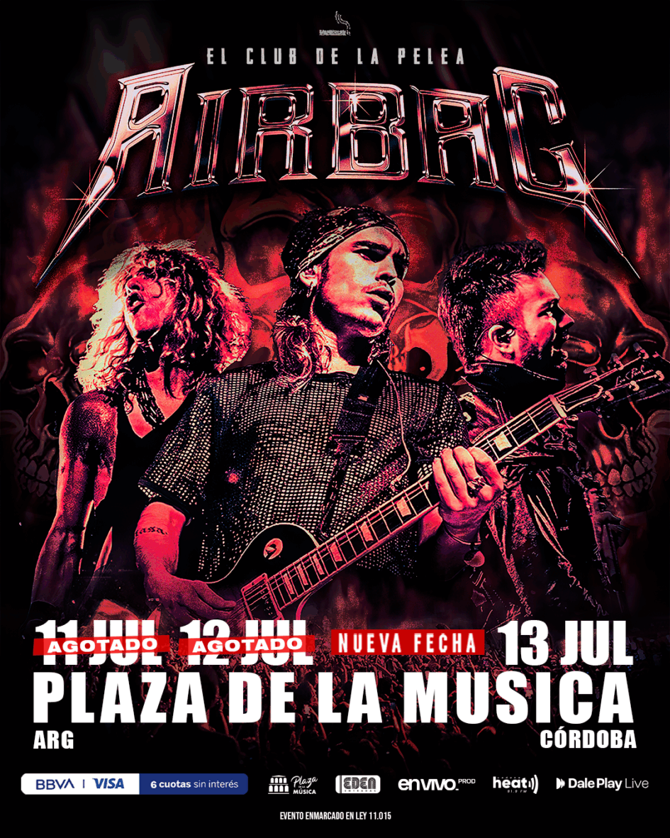 Luego de dos River Plate completamente agotados y una convocatoria que superó las 150.000 personas, AIRBAG confirma su arrollador presente con una noticia que impacta: ¡agotaron dos funciones consecutivas en Córdoba en cuestión de minutos! Ahora, ante la altísima demanda, suman una tercera fecha el domingo 13 de julio en Plaza de la Música.
