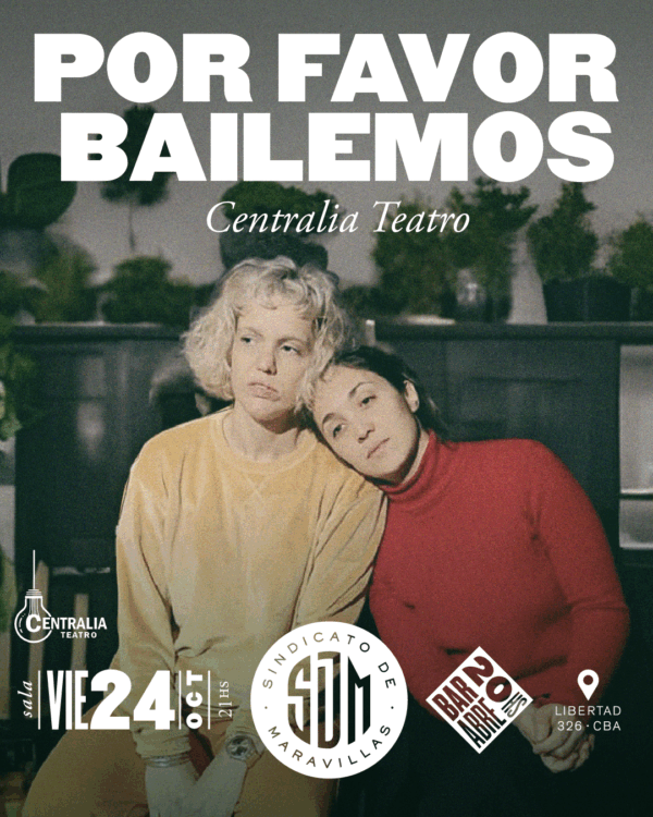 Viernes 24 de octubre a las 21hs en el Sindicato de maravillas (Libertad 326) Entrada general: $13.000 por WhatsApp 3515212600 o por antesala.com.a Angela quiere bailar, quiere moverse, quiere cambiar el ritmo de su vida.Roberta es feliz así como está…… Ver más →