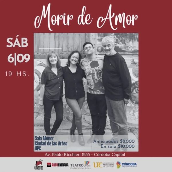 El sábado 06 de septiembre a las 19:00 en Sala Menor. Entradas en boletería y Autoentrada. Morir de amor es una puesta en escena que narra la tragedia de tres mujeres que, incapaces de sobrellevar la pérdida del amor, deciden… Ver más →