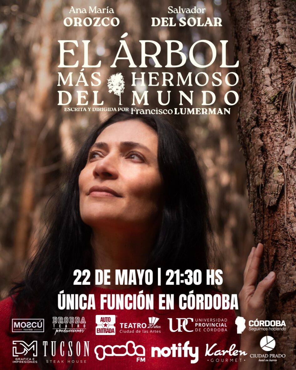Llega al teatro de Córdoba Ana María Orozco (sí, Betty la Fea) con “El árbol más hermoso del mundo”, una obra escrita y dirigida por Francisco Lumerman y coprotagonizada por el actor peruano Salvador del Solar. Es la primera vez que la reconocida actriz colombiana viene a Córdoba, y lo hace con esta obra que ya cuenta con la aprobación del público de Buenos Aires. Los cordobeses la podremos ver en una única función que se realizará este jueves 22 de mayo a las 21.30 hs. en la Sala Mayor del Teatro Ciudad de las Artes. Se trata de una historia intimista, conmovedora, donde dos soledades se cruzan inesperadamente.