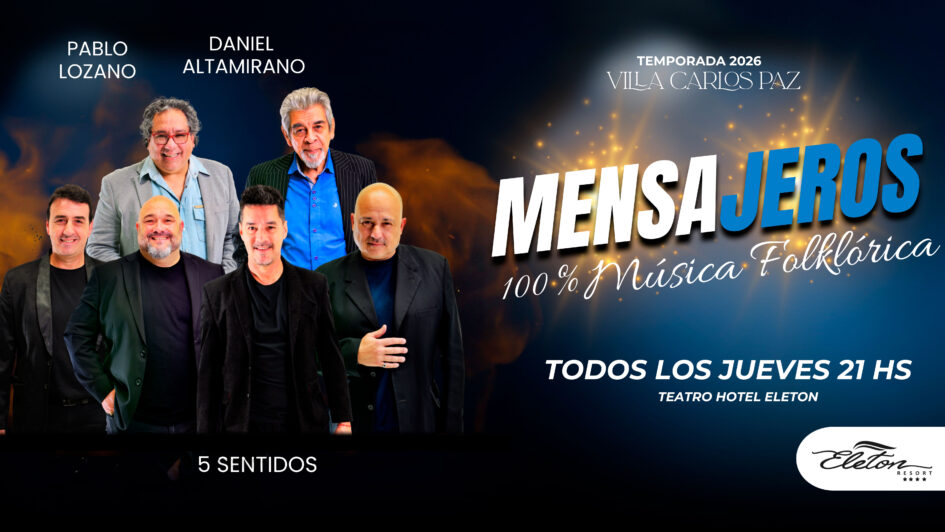 Daniel Altamirano, Pablo Lozano y 5 Sentidos presentan el espectáculo de música en vivo y multimedia “Mensajeros”. Este puñado de artistas traen consigo, como su nombre lo sugiere, “el mensaje” de grandes creadores de nuestra música de raíz folklórica sumado al humor tan característico de Córdoba, pensado para disfrutar en familia. Cada propuesta trae consigo su propio estilo y personalidad interactuando juntos en distintos momentos del espectáculo, logrando un desarrollo entretenido y de gran valor cultural. La música es interpretada en vivo y está acompañada por excelentes músicos, en la moderna sala Francisco acondicionada con pantalla de LED, sonido e iluminación de gran nivel.