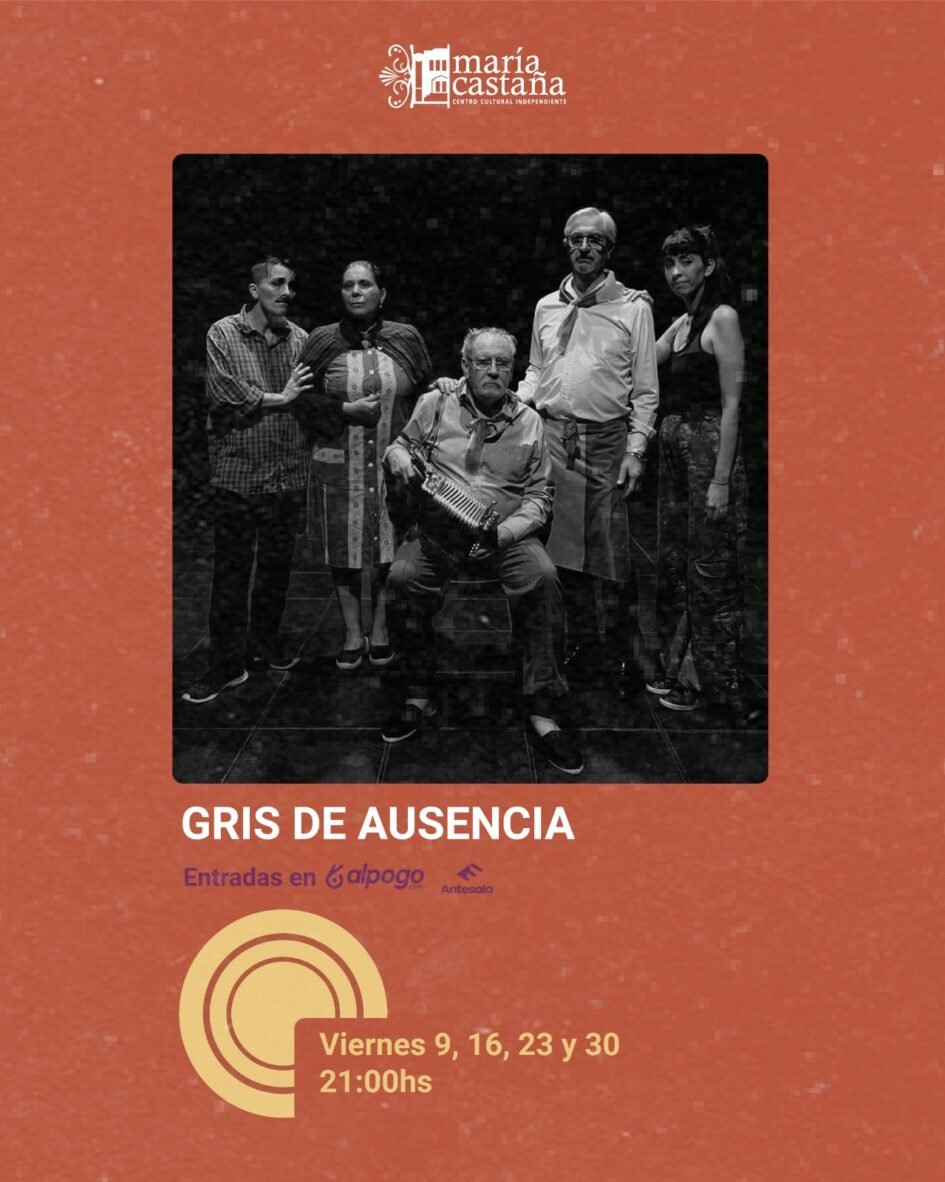 “Gris de Ausencia” es una comedia de emociones que aborda la temática de la migración y sus profundas implicaciones en el seno familiar. La obra, que resuena con la historia de cientos de familias argentinas, ofrece una reflexión sobre las experiencias, los recuerdos y las expectativas que acompañan a quienes se ven obligados a dejar su hogar. La obra invita a sentir las emociones que se transportan y se construyen a través de las idas y venidas. El público, a través de su participación, tendrá la oportunidad de ser testigo de las múltiples facetas de estos personajes entrañables.