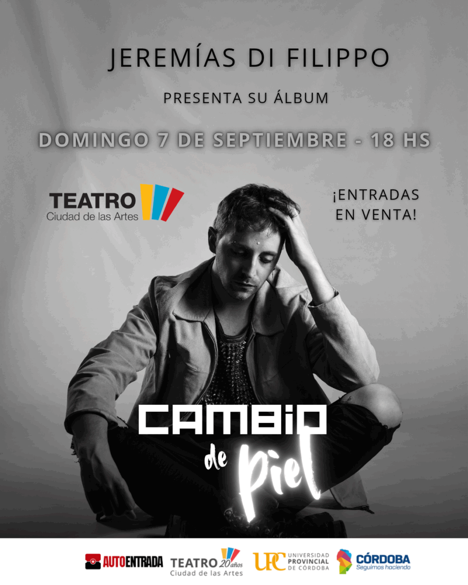 El actor y productor teatral (EnCitado Producciones) presenta su segundo álbum “Cambio de Piel” el Domingo 7 de Septiembre a las 18 hs en la Sala Menor de Teatro Ciudad de las Artes . Las entradas están en venta en Autoentrada o Boletería del Teatro : Anticipadas $18.000 hasta el 6/09 y $22.000 ese mismo día (7/09)