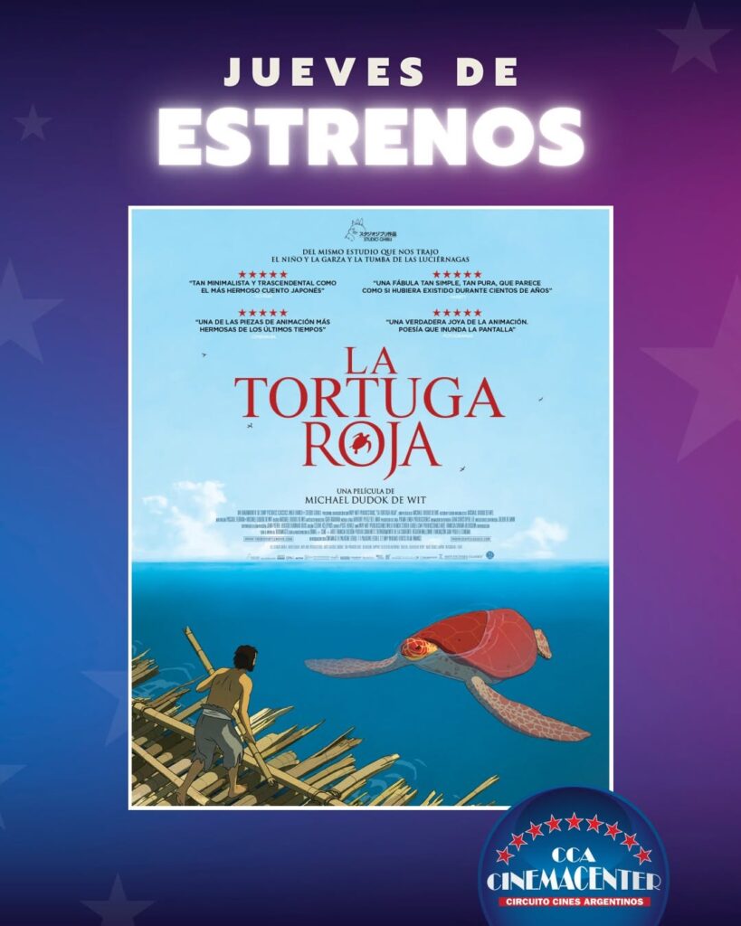 PELÍCULA SIN DIÁLOGOS. Esta producción de Studio Ghibli narra la historia de un hombre que naufraga en una isla tropical desierta, y que tras varios intentos fallidos por escapar encuentra una misteriosa tortuga roja que cambiará su vida para siempre. Premio Especial del Jurado en la sección Una Cierta Mirada del Festival de Cannes.