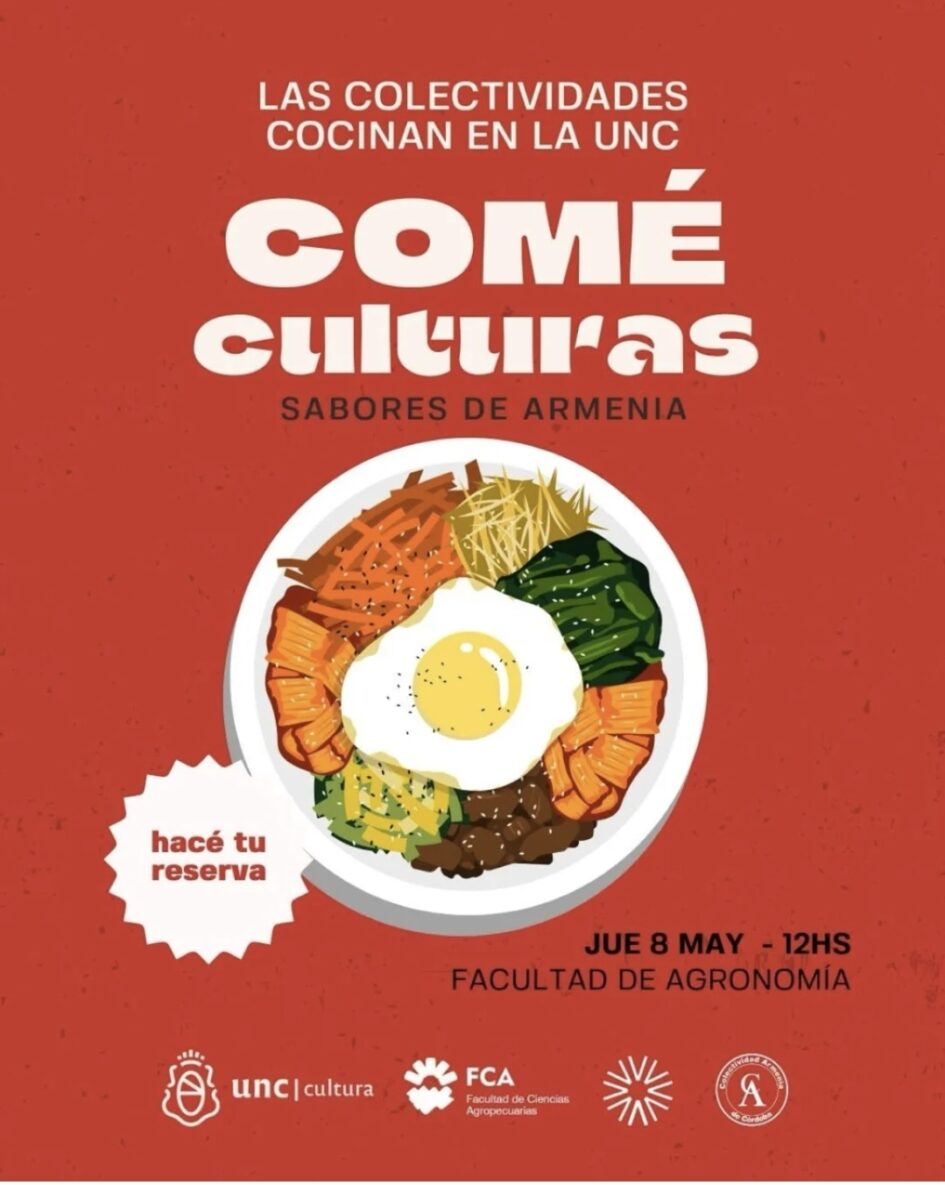 Para el postre baclawa y bandeja de dulces.Podés hacer reserva de tus platos hasta el miércoles 7 de mayo al mediodía en la pag de Organizado junto a la Mesa permanente de Colectividades y espacios gastronómicos de la UNC, en esta oportunidad con Agro Bar.