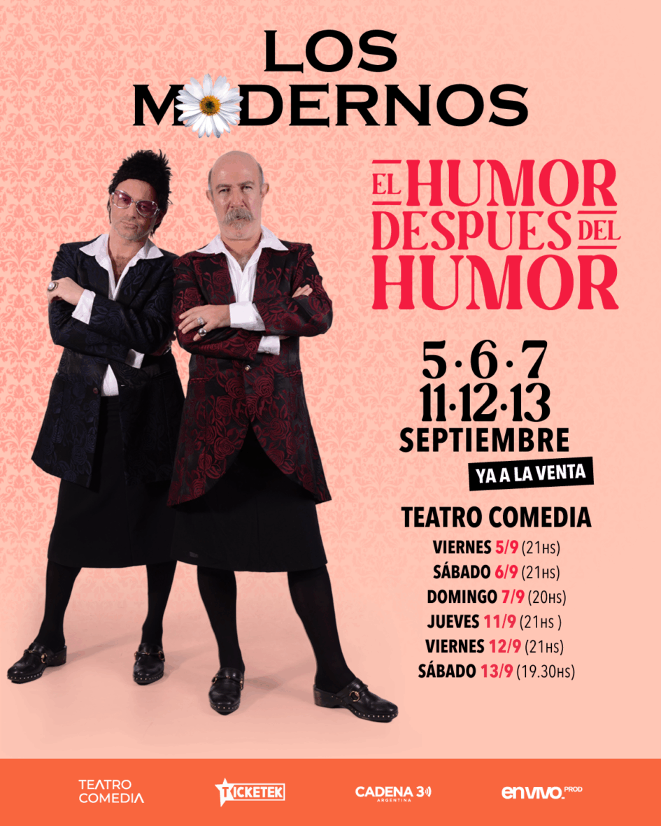 Hoy, con su inconfundible mezcla de humor filoso, refinamiento estético y destreza actoral, Los Modernos siguen demostrando por qué son considerados un hito dentro de la escena teatral contemporánea.