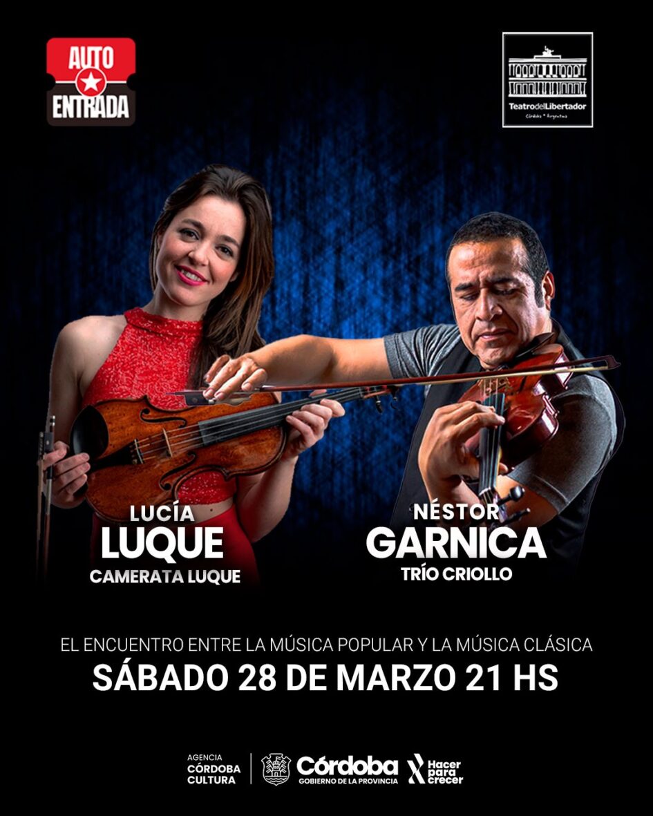 La propuesta artística recorrerá distintos momentos: un segmento dedicado al repertorio folklórico junto al Trío Criollo —formato que Garnica impulsa desde 2020— con violín, guitarra y bombo; otro protagonizado por la Camerata Luque, ensamble integrado por destacados músicos de la Orquesta Sinfónica de Córdoba; y un cierre donde ambos proyectos confluyen en una fusión vibrante que integra folklore, repertorio clásico y obras de Astor Piazzolla, generando una experiencia sonora única.