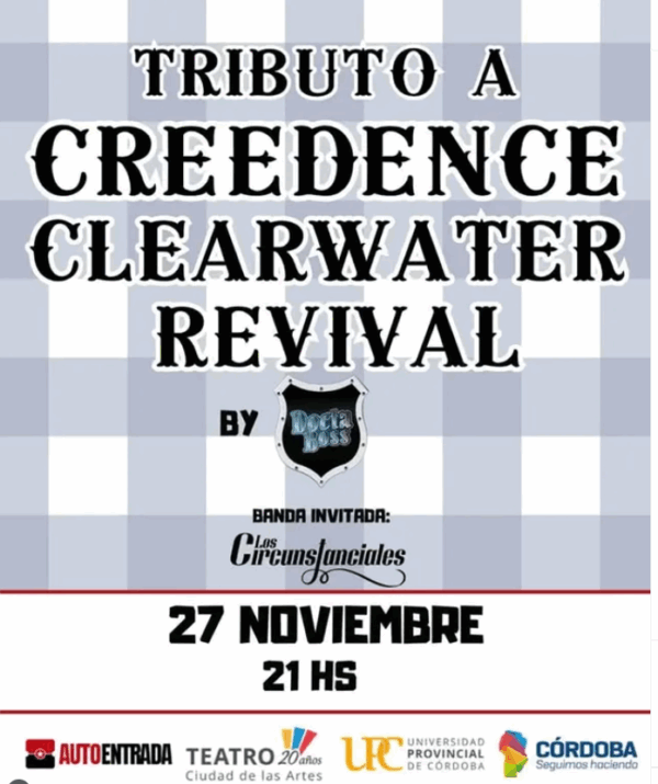 ¡Noche de rock, historias y nostalgia! Sábado 27 de noviembre a las 21:00 en Sala Mayor Un recital homenaje a Creedence Clearwater Revival, repasando todos sus grandes hits y las historias detrás de cada canción.Una cita imperdible para cantar, recordar… Ver más →