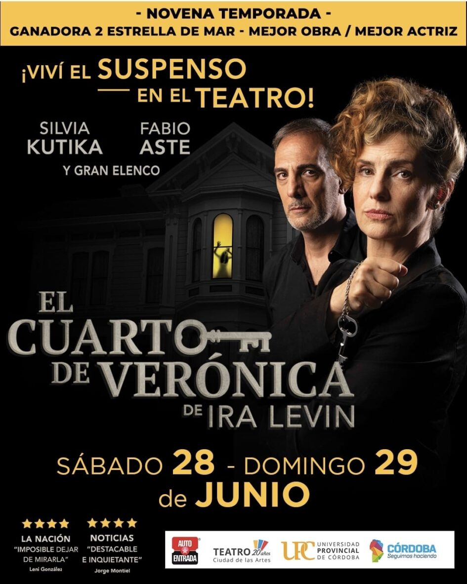 Un thriller psicológico teatral que, como sucede con el cine, mantiene al público inmóvil en la platea. La obra fue un éxito sin precedentes en Broadway a principios de la década de los 70 y luego se representó en Londres, pero Ira Levin siempre se negó a que su exitosa obra teatral se llevará al cine porque expresó que la magia de “El cuarto de Verónica” debía ser presencial en una sala teatral.
