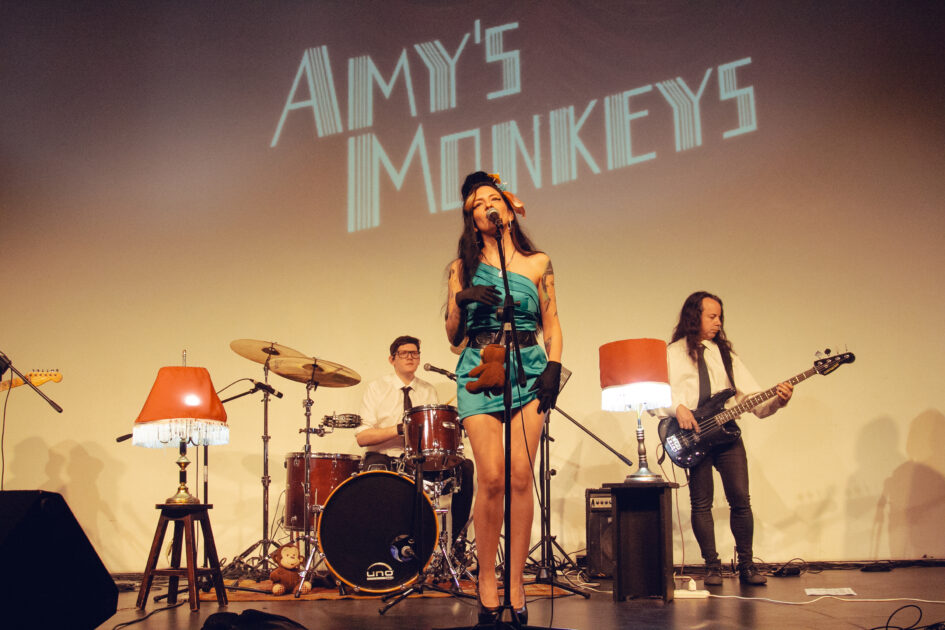 Amy’s Monkeys es un tributo único que transporta al público a la esencia de un concierto de Amy Winehouse. Con interpretaciones apasionadas y fieles de sus temas más icónicos, este espectáculo homenajea a una artista inolvidable, fusionando Soul, Jazz, Ska y R&B con un vestuario y sonido que evocan la esencia de una época.
