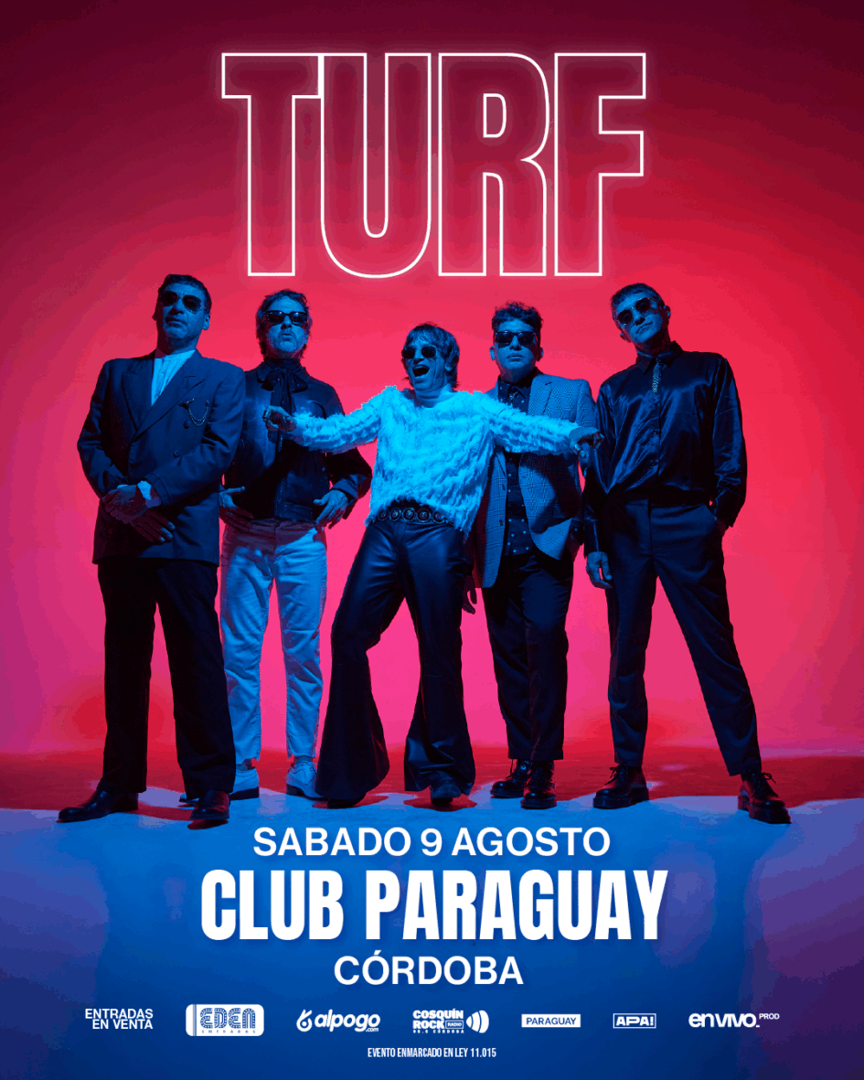 Y este viernes 9 de agosto, Turf llega a Córdoba para presentarse en Club Paraguay, en lo que será la primera ciudad donde se presentaran luego del lanzamiento de su nuevo material . Este show inaugura una nueva etapa post-lanzamiento y anticipa la presentación oficial del disco, que tendrá lugar el 15 de agosto en el Teatro Gran Rex de Buenos Aires.