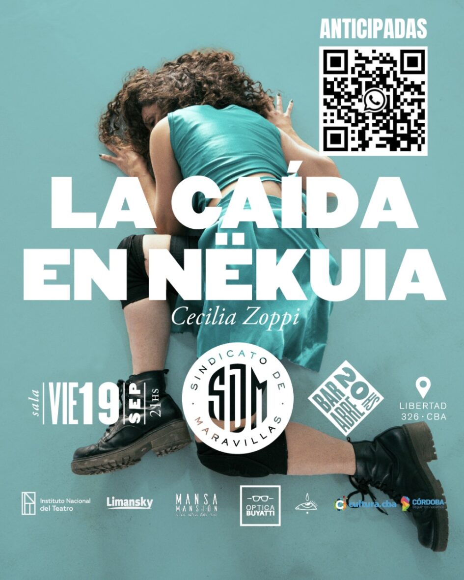 La bailarina y coreógrafa Cecilia Zoppi se presenta en un única y última función de La Caída en Nëkuia, un solo de danza contemporánea en co-dirección con Belén Ghioldi y Maria Palacios, el viernes 19 de septiembre a las 21hs en el Sindicato de Maravillas (Libertad 326, Córdoba).