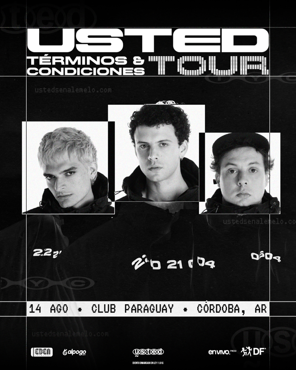 Usted Señalemelo anuncia seis fechas muy esperadas por su público argentino, marcando su regreso a los escenarios del país con la gira “Términos & Condiciones” . Producida por DF Entertainment, esta etapa nacional los llevará durante el mes de agosto por escenarios emblemáticos de Córdoba, Santa Fe, San Juan, Mendoza y Neuquén, completando el ciclo que abren sus shows en Niceto para mañana y pasado mañana. Se trata de una gira de regreso a las bases, donde el trío apuesta por formatos más íntimos que permitan una mayor cercanía con el público y un vivo que expande el universo conceptual de su último disco.