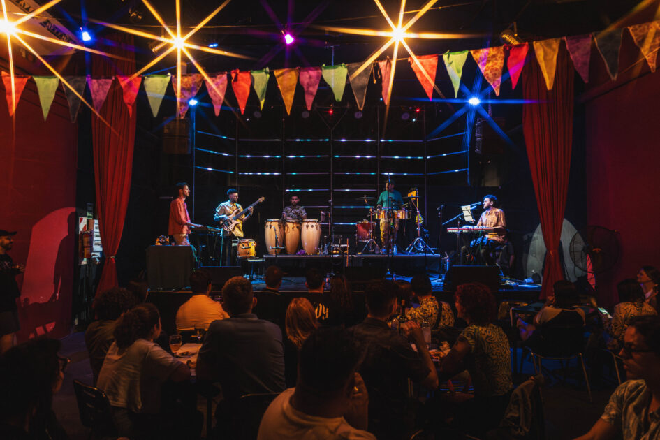 La Latín Jam de Cba desplega su repertorio en honor al cuarteto y la Mona Jiménez con grandes invitadxs de la escena cordobesa que se suman al escenario del bar cultural y artístico Pez Volcán de Barrio Güemes.