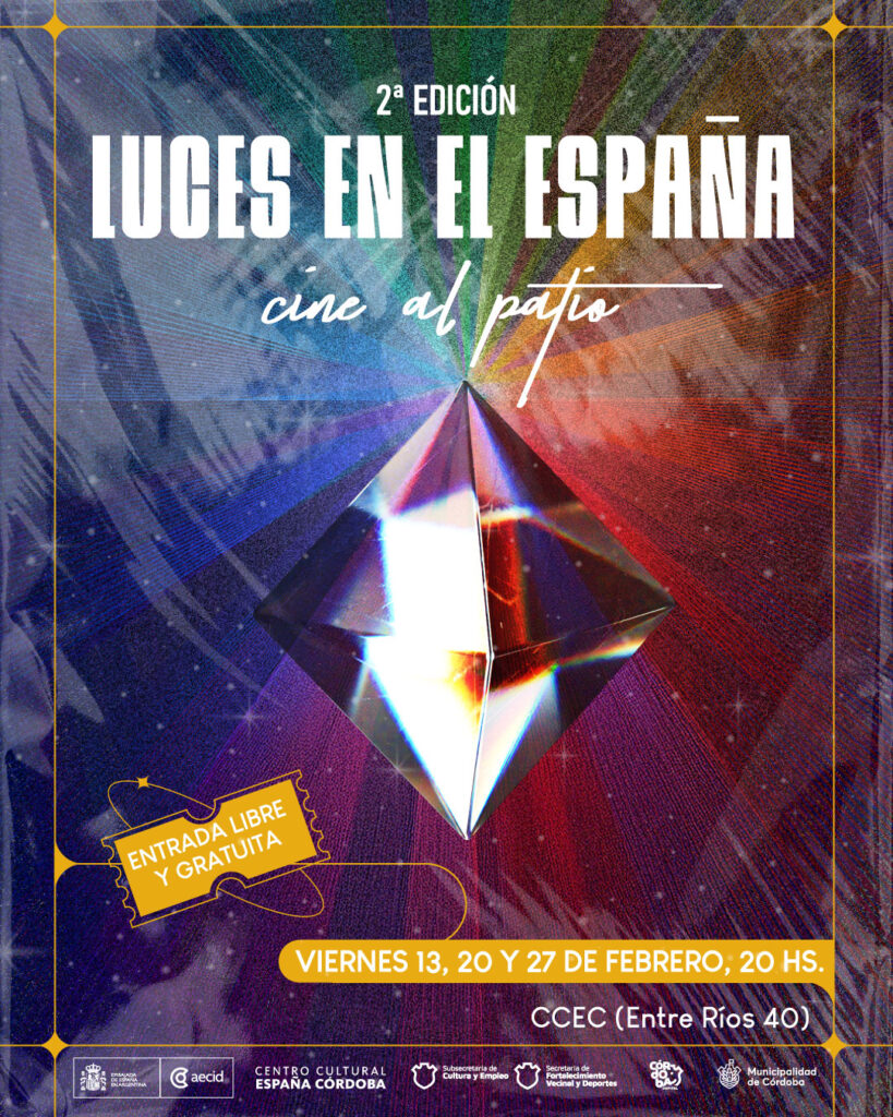 El verano en la ciudad tiene rituales que se renuevan cada año, y uno de ellos es el cine al aire libre del Centro Cultural España Córdoba (Entre Ríos 40). Durante los próximos viernes 14, 20 y 27 de febrero, siempre a las 20:00, se vivirá una nueva edición de Luces en el España con entrada libre y gratuita.